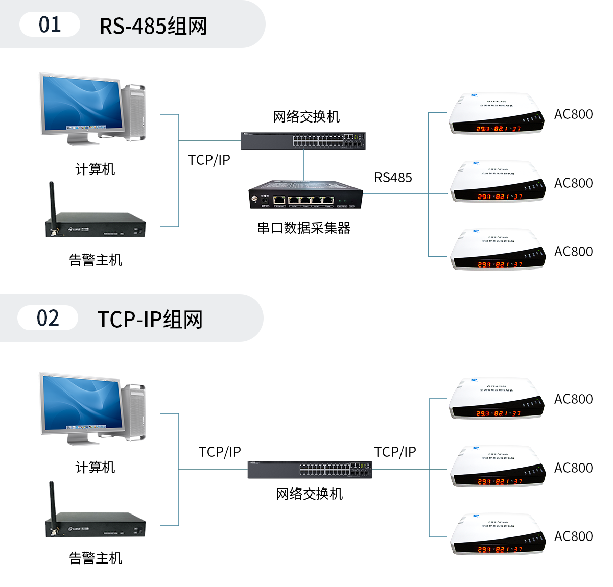 ZHT-AC800 網(wǎng)絡(luò)型空調(diào)智能啟動(dòng)控制器,內(nèi)置網(wǎng)絡(luò)及RS485通訊接口,可使用TCP/IP組網(wǎng)和RS485總線(xiàn)連接方式組網(wǎng),可根據(jù)空調(diào)現(xiàn)場(chǎng)的位置分布靈活選擇組網(wǎng)方式,實(shí)現(xiàn)遠(yuǎn)程集中管理所有空調(diào)。其系統(tǒng)組網(wǎng)圖如左圖所示。