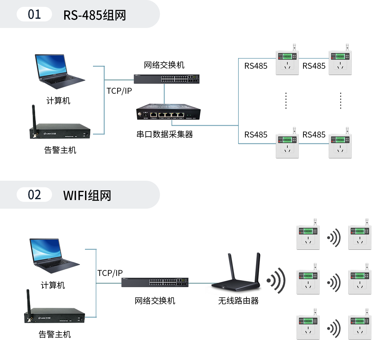 ACsmart智能節(jié)能空調(diào)控制器默認(rèn)裝配RS485通訊接口,通常用485總線“手拉手”方式將多臺智能空調(diào)控制器進(jìn)行集中組網(wǎng);對選配WiFi通訊模塊的智能空調(diào)控制器,可直接通過WiFi直連空調(diào)控制器去修改其配置參數(shù),同時(shí)支持WiFi局域網(wǎng)組網(wǎng)實(shí)現(xiàn)實(shí)時(shí)查看所有空調(diào)的開關(guān)狀態(tài)、運(yùn)行參數(shù)及用電詳情等信息,其系統(tǒng)組網(wǎng)圖如左側(cè)所示。